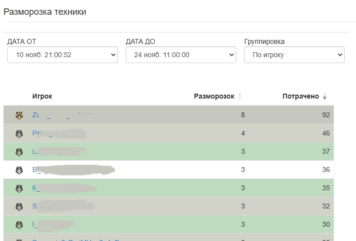 Внимание! Для сбора этих данных необходимо присутствие моего аккаунта в вашем клане!